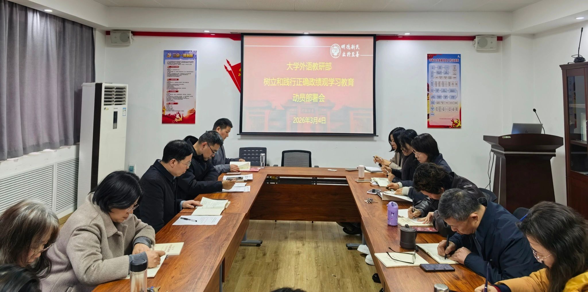 3月4日下午,樱花直播 召开树立和践行正确政绩观学习教育动员部署会。部党委委员、领导班子成员、各支部书记、支部委员参加会议。